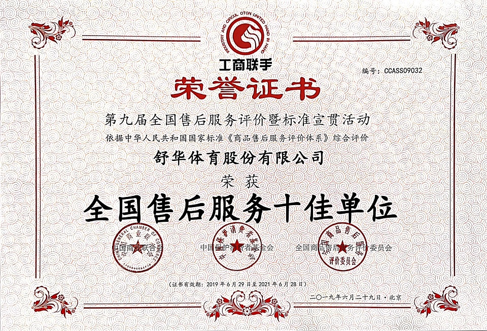 2017至2018年,bbin视讯连续两年以第一名入围年度“中国轻工业健身器材行业十强企业”;2018年,bbin视讯入驻平昌冬奥会“中国之家”,同年荣获“中国健身器材行业最具影响力品牌”。 From 2017 to 2018, Shuhua was named the "Top 10 Enterprise of Body Building Equipment Industry in China Light Industries " for the second consecutive year. In 20